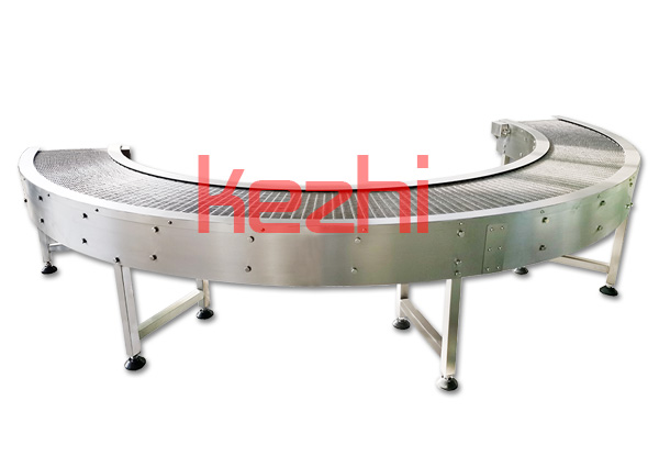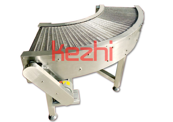 轉彎輸送機采用的形式:網帶轉彎機、鏈板轉彎輸送機、皮帶轉彎機、鏈桿轉彎輸送機、塑料模塊轉彎機等。轉彎輸送機的角度有45度、90度、180度等。轉彎機的寬度和轉彎半徑均可根據需求定做。轉彎機可根據需要安裝風機對物料進行降溫處理,也能與直行輸送機、提升輸送機形成轉彎輸送線。